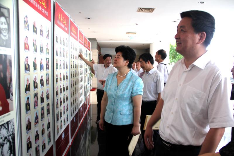 市委副书记宣传部长张兆江和市人大副主任市总工会主席葛玉琴等领导正在观看展览