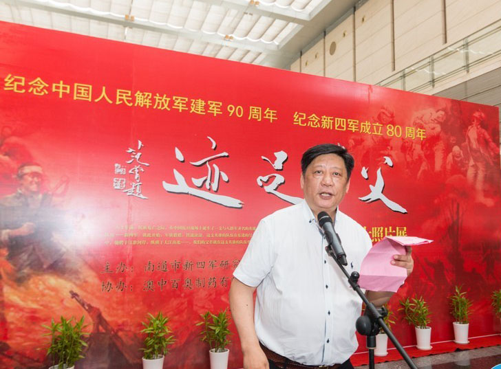 据南通市新四军研究会后代分会会长朱远源介绍,80年前,在日寇肆虐、民族危亡之时,中国战场上诞生了一支与八路军齐名的英雄队伍——新四军,在南通这个江海大地上与日寇开展了殊死的斗争,立下了不朽的功勋。今年是中国人民解放军建军90周年、新四军成立80周年,为大力弘扬伟大的抗战精神和新四军“铁军精神”,启迪后人铭记历史、继续前进,在南通市委党史办、市新四军研究会精心指导下,南通市新四军研究会后代分会主办,市老年摄影学会承办,澳中百奥制药有限公司、市爱国拥军基金、江海晚报等单位协办的《父辈足迹》——南通新四军老战士照片展如期展出。举办此次照片展,旨在缅怀父辈曾经的功绩,牢记那个英雄的时代,激励一代又一代英雄儿女,在民族复兴的征途上不断前行,在本职岗位上以更加优异的成绩迎接党的十九大召开。