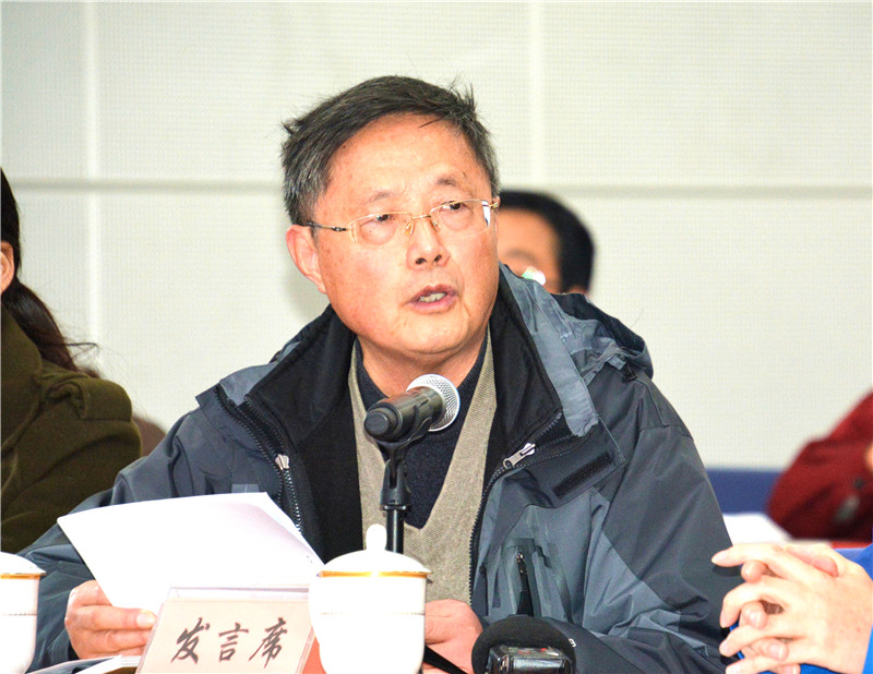 副会长兼秘书长施文彬在座谈会上。
